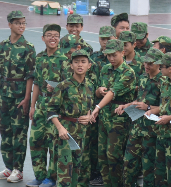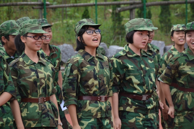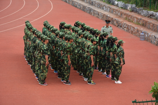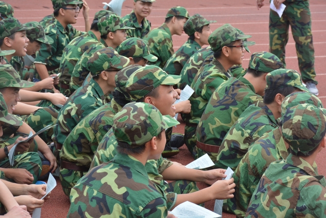本以为军训的内容也与昨天差不多,站军姿、齐步走、向左向右转。不料到操场一转,却眼前一亮:运动场上,歌声飞扬。