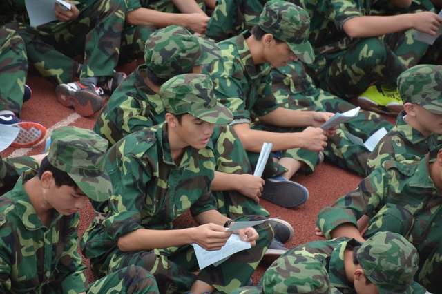 有的聪明教官从学生中选个嗓门大的站在队伍前发号施令,学生说起那些黑对手损对手的说辞比教官更起劲,有的还会改编教官的说辞,让场上气氛更加热烈。