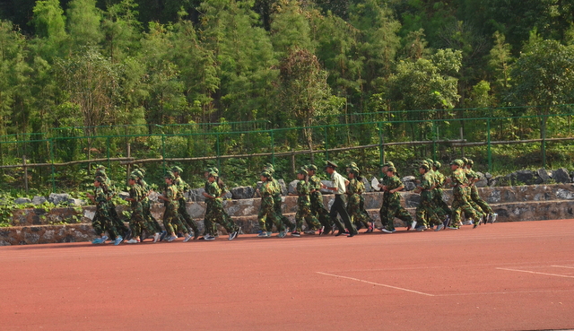 下午,骄阳似火,热浪蒸腾。军训场上,阳光投射出一道道同学们训练的矫健身影,形成一道道独特的风景。不惧骄阳,何畏热浪,进校即思进取,怕苦莫来正源——这,就是正源人的作风;这,就是正源人的精神。