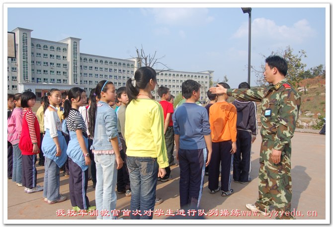 我校今年新聘了一批军训教官。每年新生的军训对学生的纪律、生活作风及生活习惯等起到很大的作用,鉴于此,我校新聘了一批军训教官,目的就是时时刻刻对学生进行军训,把军训落到学生学习、生活的方方面面,把军人那种严于律已、团结、服从指挥的作风带到学校。