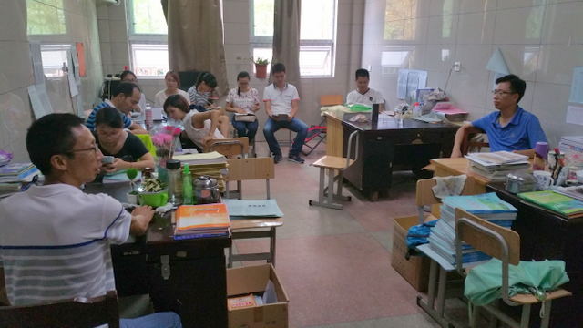 课后,以备课组为单位,进行了集体评课活动。其中,初二年级评课在一楼办公室举行,由备课组长罗海辉主持。从教师仪态到板书要求,从上课思路到难点重点,从表达方式到课程安排,各位听课老师以他们丰富经验,严谨的态度和广博的学识对每一堂课进行了中肯的点评。