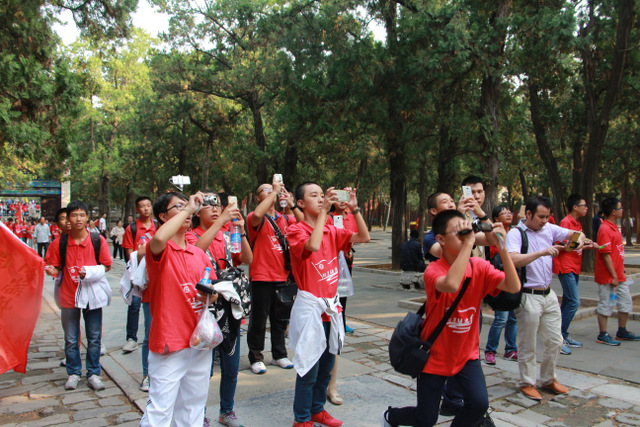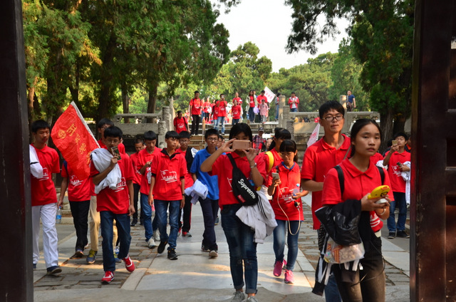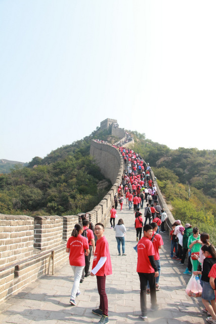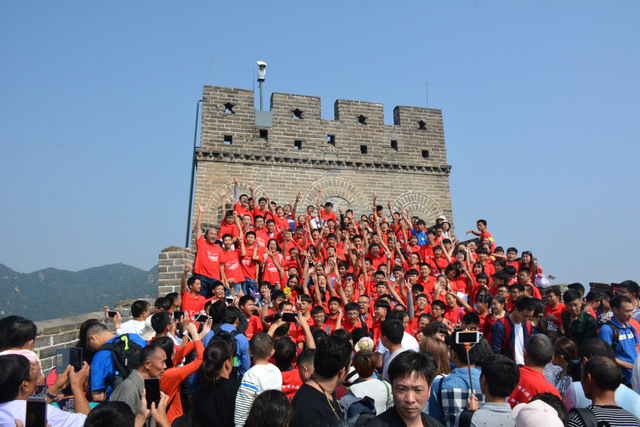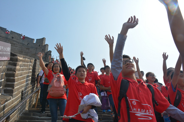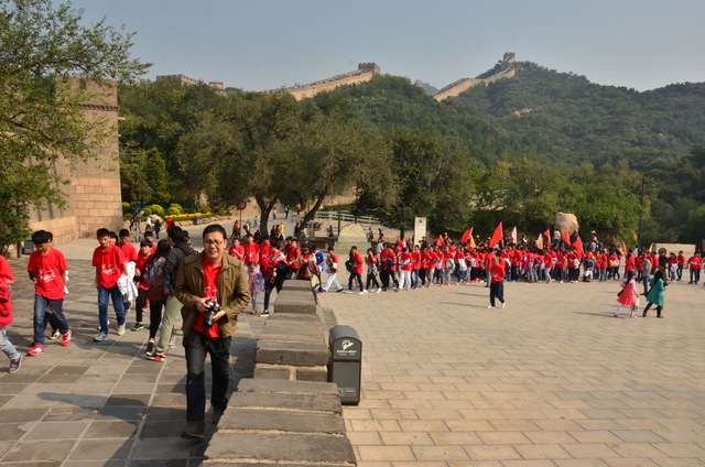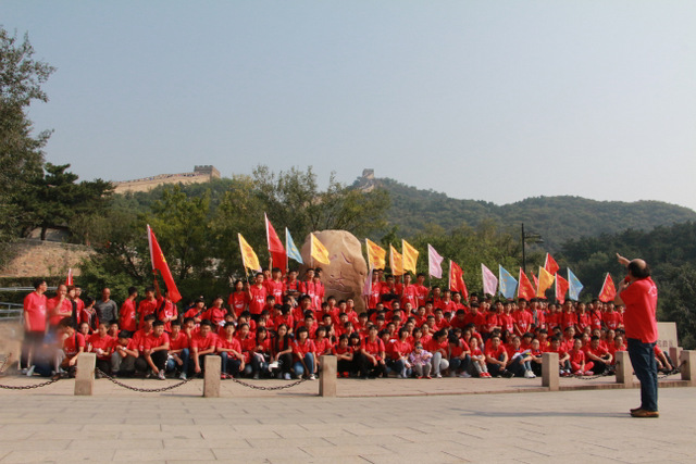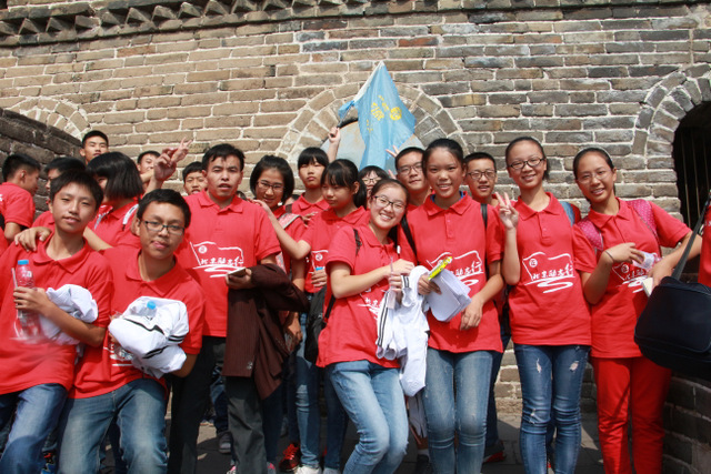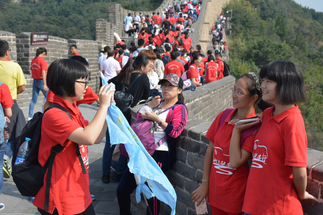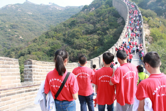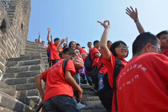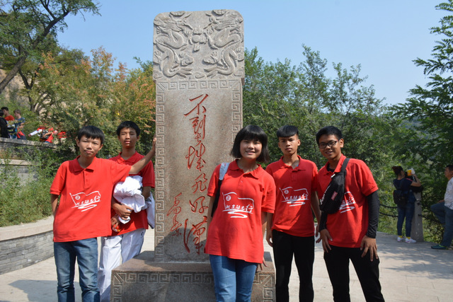 9月30日,正源学校2016年北京励志行抵京后的第二天。这一天,他们攀上了长城,游览了明十三陵,走访了北京化工大学、中国政法大学。这一天,他们身穿的“正源红”T恤杉背后印有的“湖南省耒阳市正源学校北京励志行”显得格外耀眼。