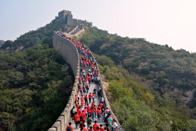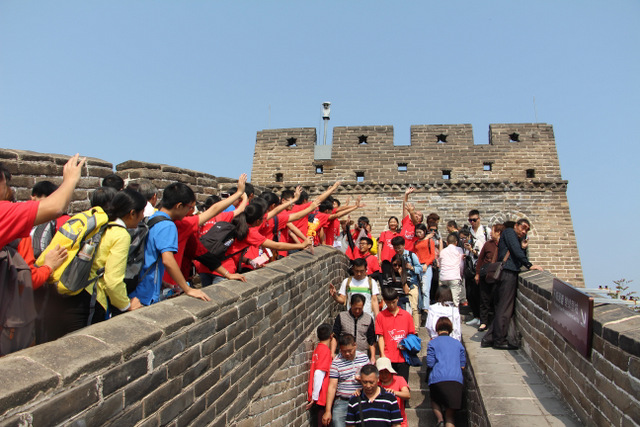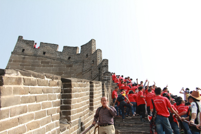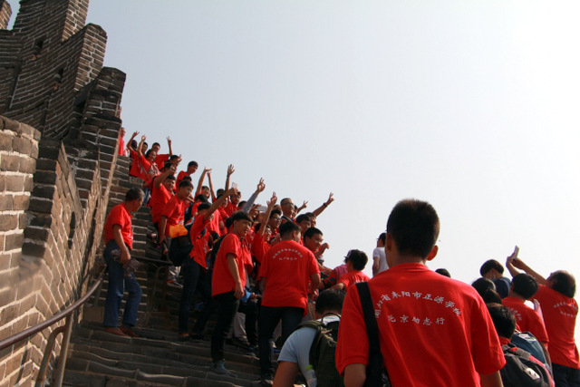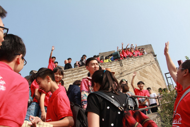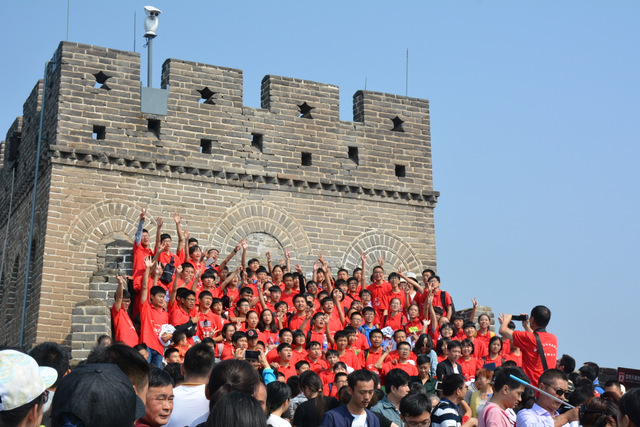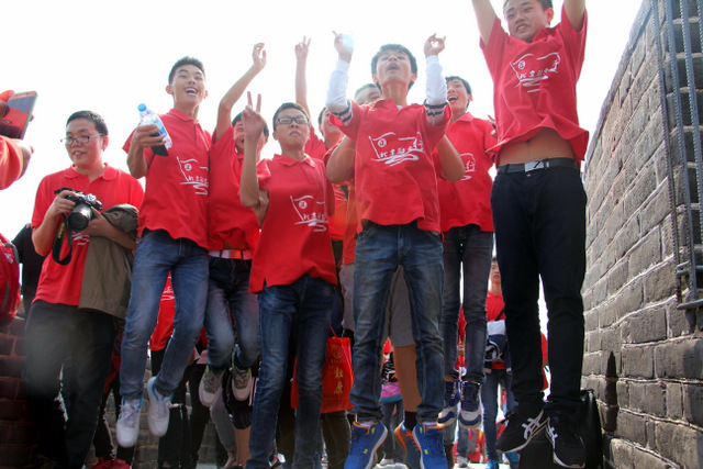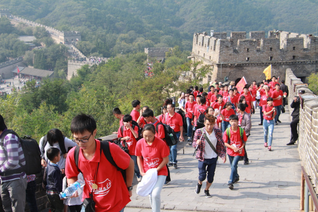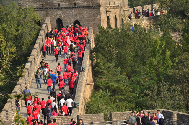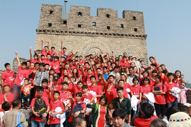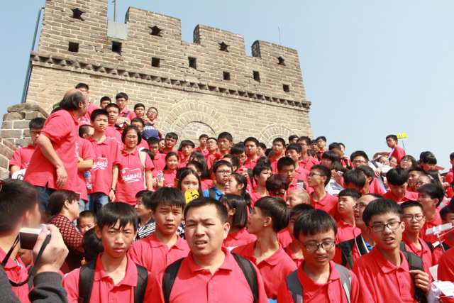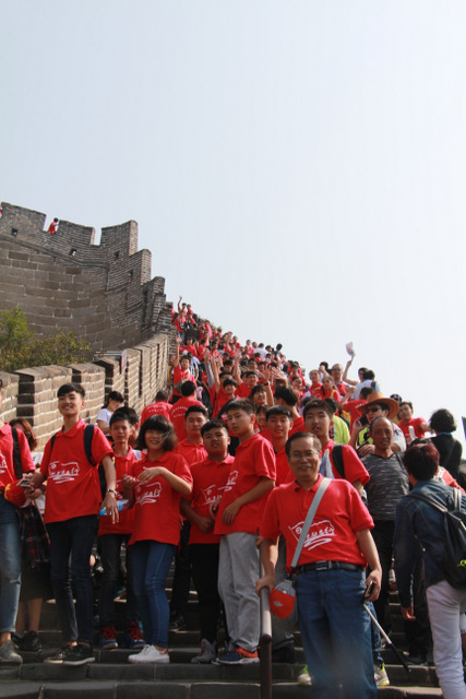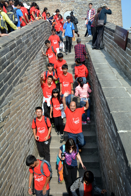 9月30日,正源学校2016年北京励志行抵京后的第二天。这一天,他们攀上了长城,游览了明十三陵,走访了北京化工大学、中国政法大学。这一天,他们身穿的“正源红”T恤杉背后印有的“湖南省耒阳市正源学校北京励志行”显得格外耀眼。