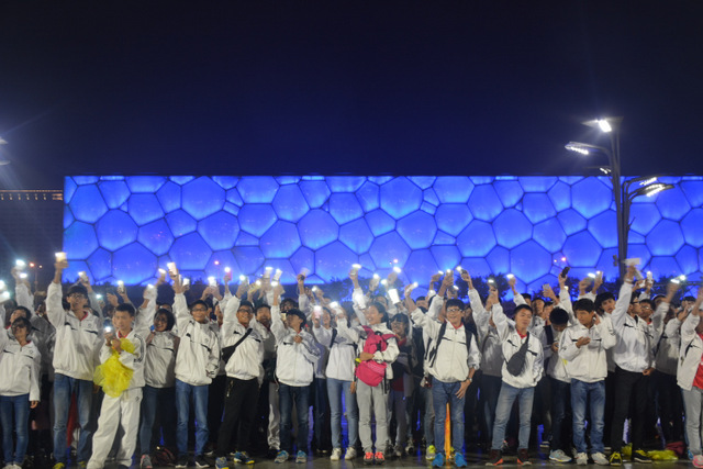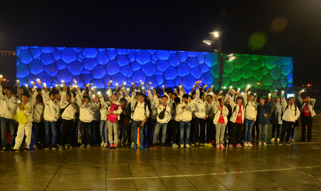 10月4日,正源学校2016北京励志行团队在参观完中国传媒大学和中央美术学院后,来到奥林匹克公园观赏夜景。美轮美奂的奥运建筑、绚丽多彩的灯光秀,夜幕下的奥林匹克公园让这群孩子尽情地释放者青春与活力,从而更显灵动。