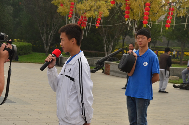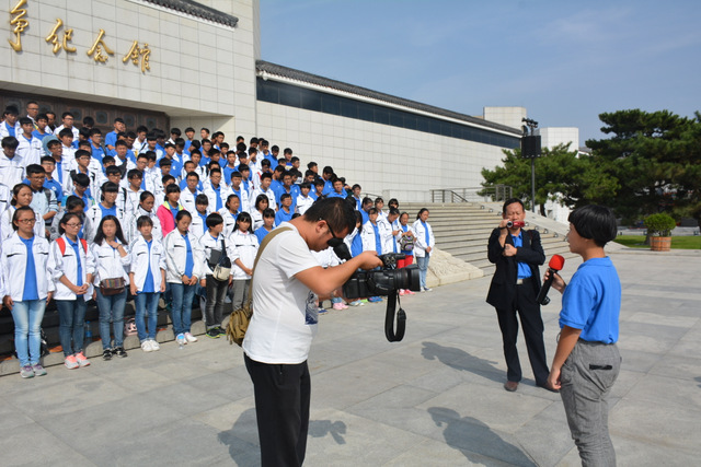 中午时分,200人的励志队伍在抗日战争纪念馆前集合。罗校长就今天上午的参观发表了简短讲话,罗校长要大家思考,那么小的日本为什么敢向数倍于自己大的中国开战!罗校长要求同学们主动站到队伍前面来谈谈自己的感想。李扬等五位同学在现场先后谈了自己的感想,他们均表示,爱国不是一句空话,只有努力学习,长一身本事,才可以在国家需要的时候,挺身而出。带队老师董树伟对孩子们说,我们现在是学生,我们的任务就是学习文化科学知识,有文化有知识,才能更好地建设我们的国家,我们的国家才会日益强大。