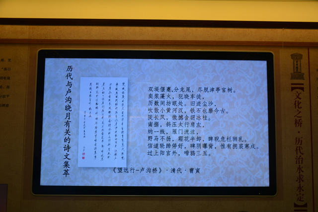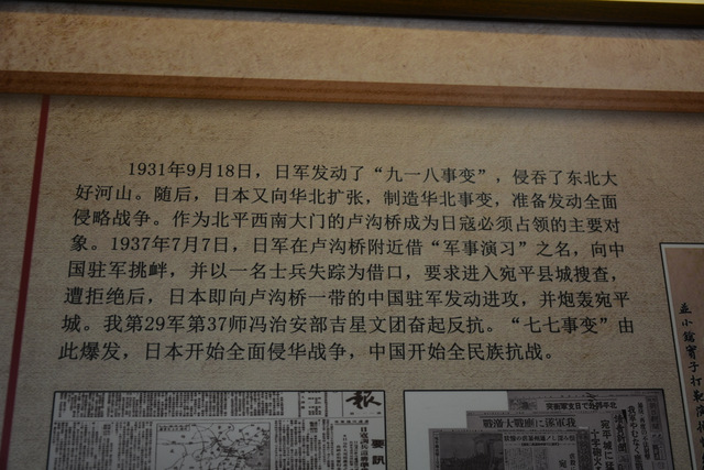 然而,我们今天来这里参观,并不是来吟风赏月的,而是用心来铭记一段历史。1937年的7月7日,日本鬼子就是在这里打响了全面侵华的第一枪。如今,战争的硝烟渐渐远去,但风云变幻的国际形势还不可以让我们马放南山。