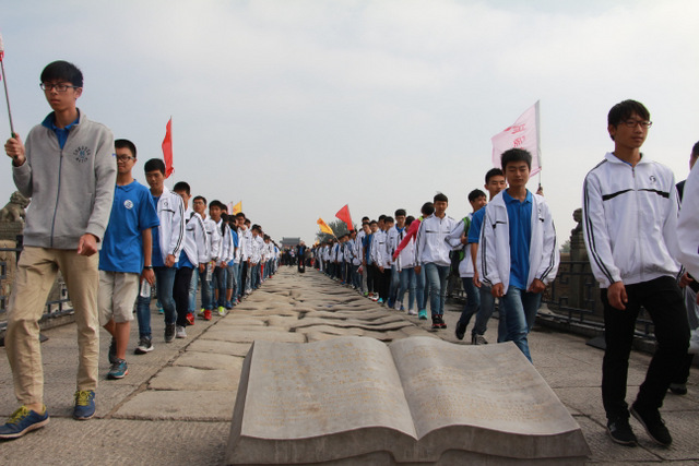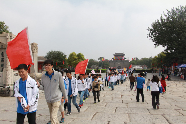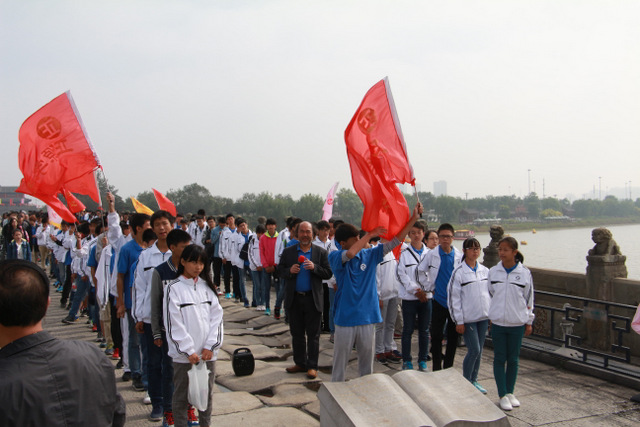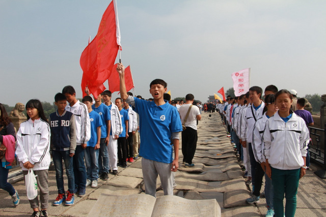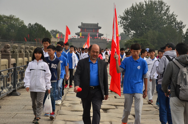 是的,我们不是来游玩的。当我们励志的队伍高呼着“勿忘国耻,勤学报国,兴我正源,爱我中华”迈过卢沟桥时,当我们面对宛平城墙上累累的弹痕时,当我们在抗日战争纪念馆目睹日军的残暴和民族的牺牲时,笼罩我们的是悲壮和耻辱。