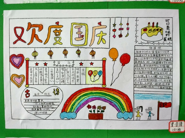 活动本着“人人参与”的原则,四年级各班同学争先恐后、大显身手,所有的参赛班级与幕后人员都付出了辛勤的汗水。各班利用班会、自习课、美术课等时间,积极组织同学们绘制手抄报,让同学们从中接受爱国主义教育,体会真善美,并用自己精美绝伦的作品赞美我们伟大祖国67年来取得的伟大成就,抒发自己对美好生活的热爱,对伟大祖国的热爱,表达自己努力学习、掌握本领、报效祖国的坚定决心。绚丽的色彩、别致的造型、新颖的设计等折射出老师和同学对本次大赛的高度重视。