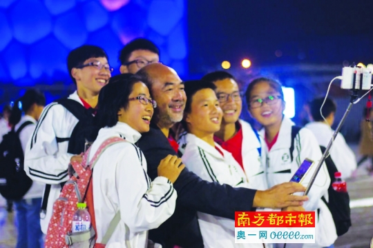 罗湘云与学生在水立方前合影。