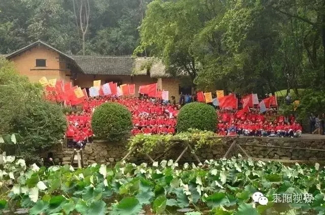 “集合!”一声令下,200人的队伍迅速汇集到故居前,统一的红色T恤衫像一团红霞,秋风呼啸,彩旗飘舞,岁月流金,大家齐声高呼毛主席的诗词:“孩儿立志出乡关,学不成名誓不还。”声音响彻四野,不绝于耳。清水塘中的荷叶,在宣誓声中一齐翻向一边,仿佛打开万卷书页,让同学们来品读。