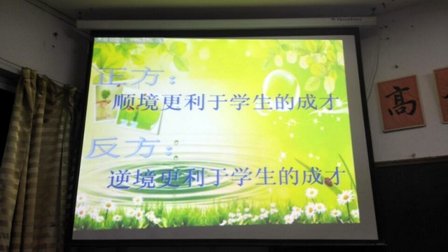 我们第二轮的辩题是“顺境和逆境哪个更利于学生的成才”各班的准备都非常充分,积极备战本轮比赛。
