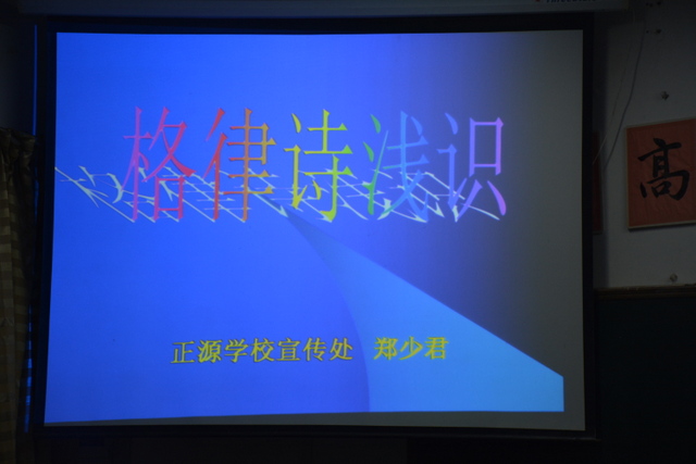 10月31日晚七点,正源学校高一年级一百一十名同学齐聚二楼多媒体培训教室,聆听校宣传处主任郑少君老师讲授《格律诗浅识》。