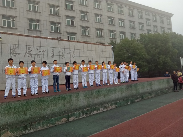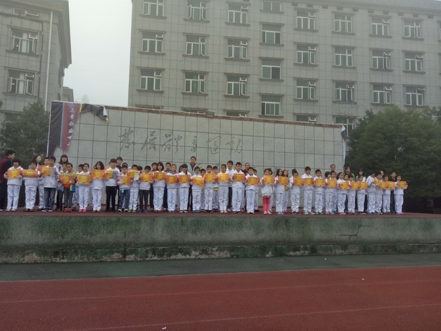 11月4日上午8点整,六年级全体同学和老师在小学部运动场举行了颁奖仪式。数学能力赛共有120名同学分别获得一、二、三等奖,数学智力赛共有80名同学分别获得一、二、三等奖。其中有六位同学智力竞赛为满分。获奖同学全部穿着白色校服,在人群中显得格外耀眼,脸上笑开了花。年级主任阳明权和数学备课组长彭升银老师向获奖同学表示祝贺。所有获奖学生在台上和老师合影留恋,台下掌声不绝于耳。