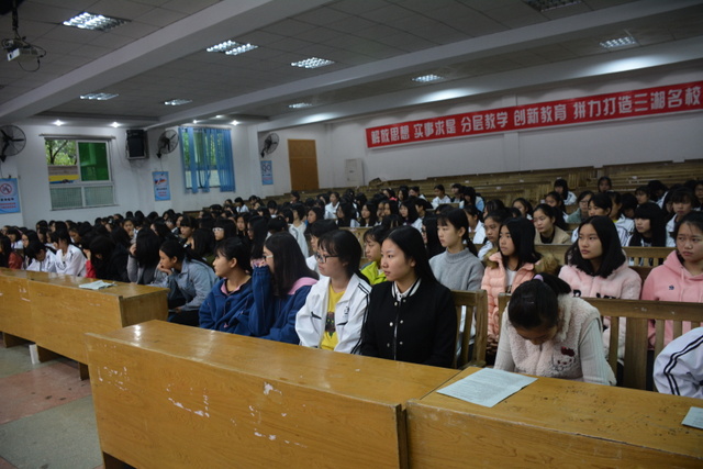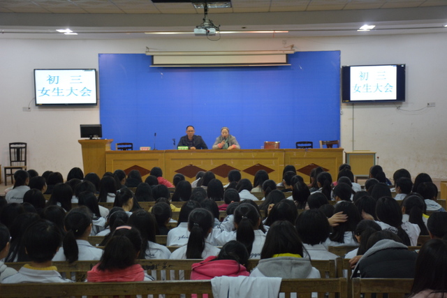 11月9日上午,初三年级女生会议在学校报告厅举行。年级主任唐循南主持会议,徐菊香老师作辅导讲座。