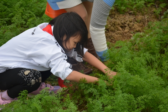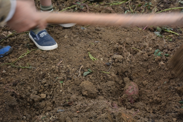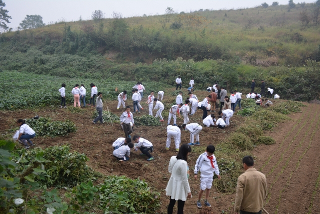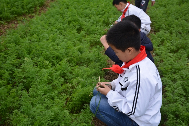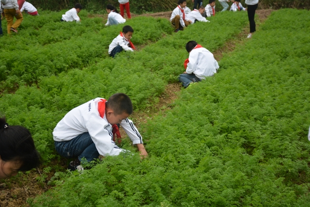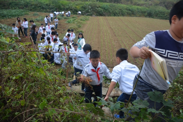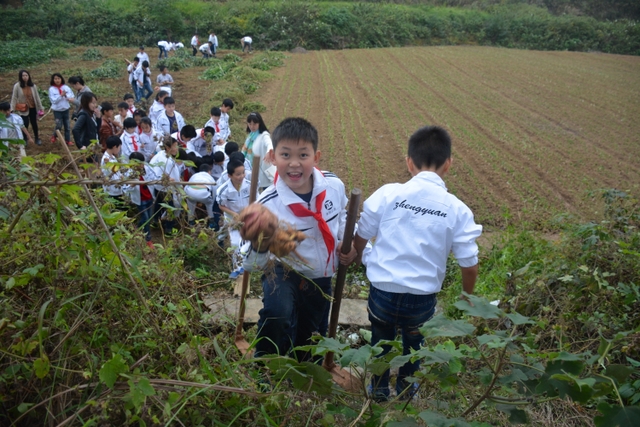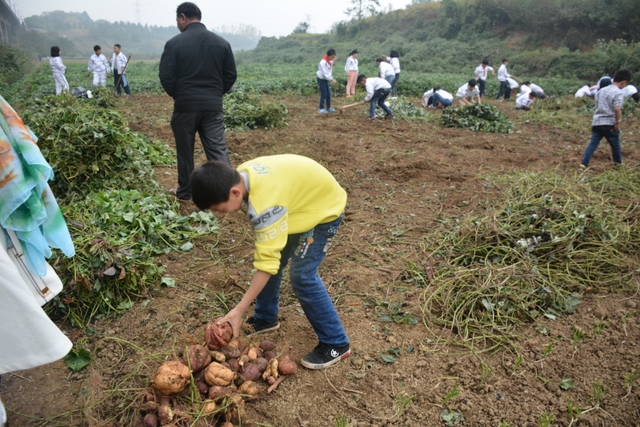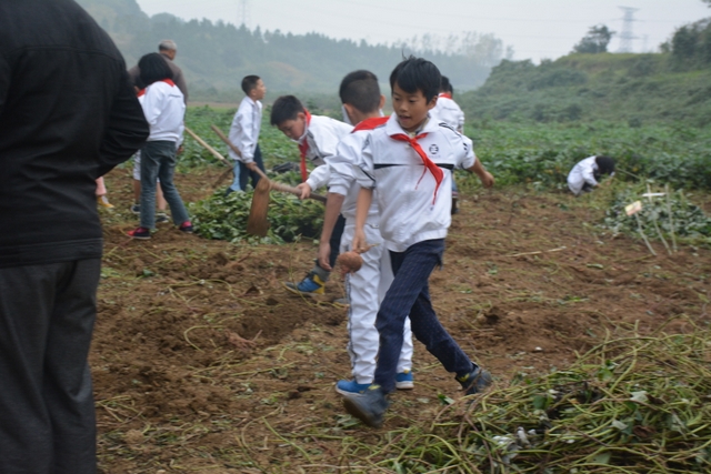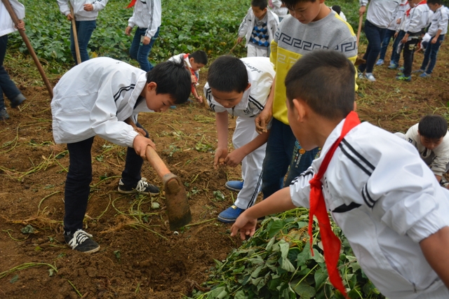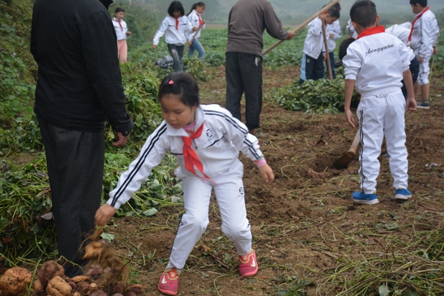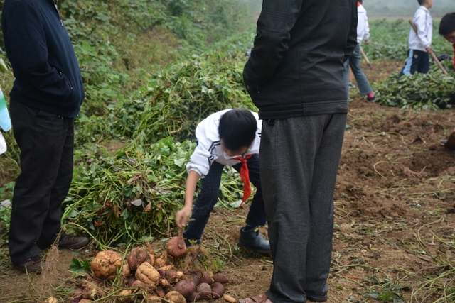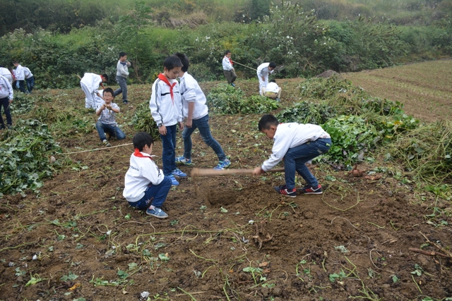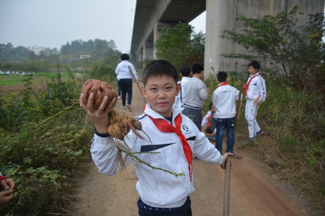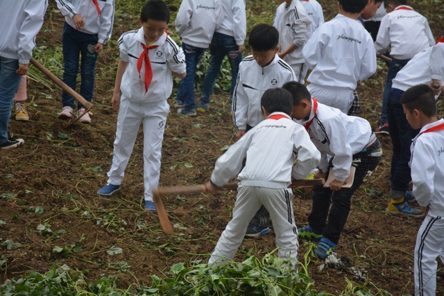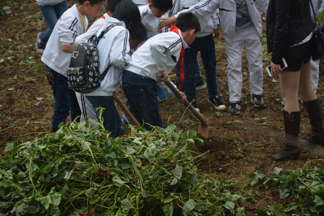 这次劳动主要是挖红薯。各班学生分工明确,有的割薯藤,有的挖红薯,有的在菜地里除草……同学们不怕苦,不怕累,个个忙得不亦乐乎。