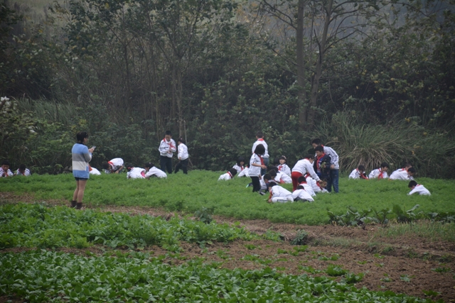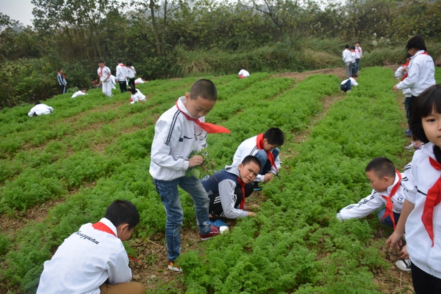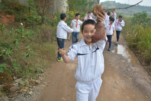 劳动结束后,同学们一路欢歌笑语,兴奋不已。