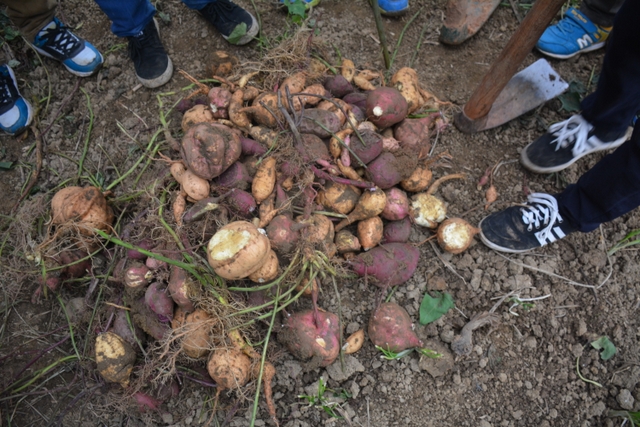 小学部五年级学生到学校农场参加挖红薯劳动