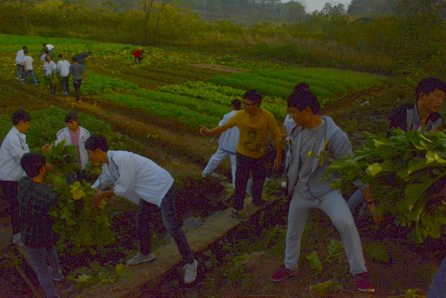 返校了,在路上,我们一路高歌,没有抱怨,只有愉悦(刘晨阳)。不单单是一次体力劳动,给我带来了身体的疲累,精神的虚弱和夹杂泥土、沙粒的指甲,还是一次亲近自然的好时光。尽管这是我第一次来正源农场,但是我希望还有第二次、第三次……(李扬)