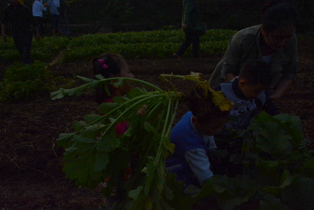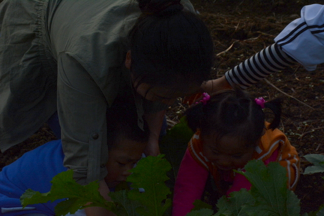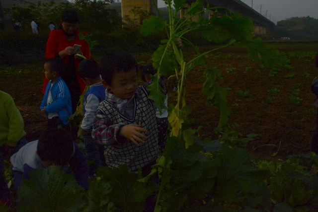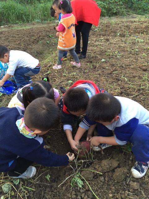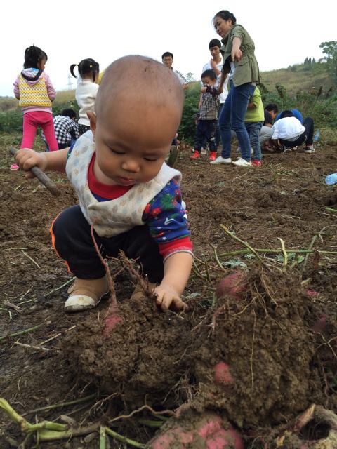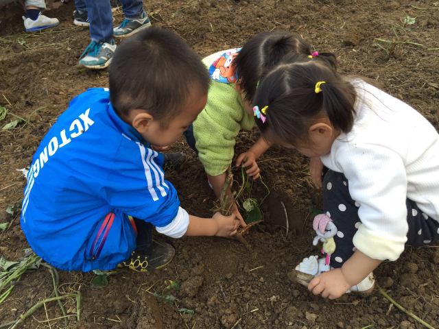 11月17日下午,学校同仁农场出现一道“千古奇观”:幼儿园都谈不上的十几个小朋友(最小的还只一岁零两个多月),和高一113清华班的同学们一起拔青菜,挖红薯,在幼儿教育史上写下宝贵的一页。小不点们对到哪里去、干什么当然是懵懂的,可是,只要离开教室、出门、坐车,他们就兴致勃勃,手舞足蹈。到了农田里,有各种事可玩,更是喜不自胜。拔青菜,使尽洪荒之力,把在教室里学唱的《拔萝卜》用到了大自然现场。往往菜还没拔起来,人先倒坐在了地上。若是偶尔成功地拔起一株,就举过头顶,大声地喊叫,生怕没有阿姨和同学们看见,简直比凯旋的将军还感到荣耀。在阿姨们的帮助下,居然拔了一堆青菜。他们也用手指挖——或者说是抠——红薯,一招一式,绝不偷懒,埋头苦干,全身心投入,其乐无穷。两个多小时的时间,没有哪一个小不点不喜欢捞泥巴,怕把身上弄脏,没有哪一个呆立不动,更没有哪一个哭闹。