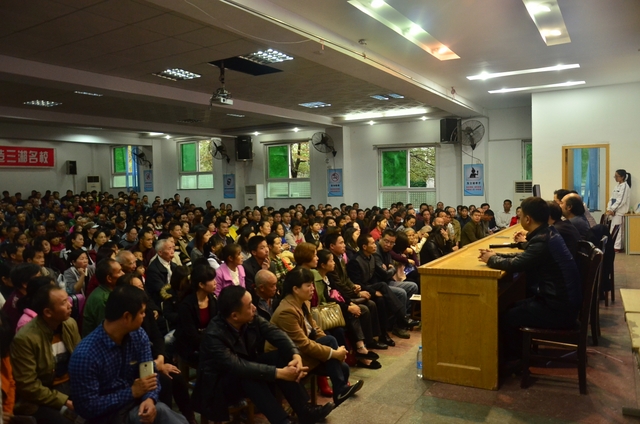 因下雨,原定在学校南操场举行的家长会改在报告厅,1000多位学生的家长聚集报告厅,过道上,主席台边,满满的人,挤而不乱,好不热闹。