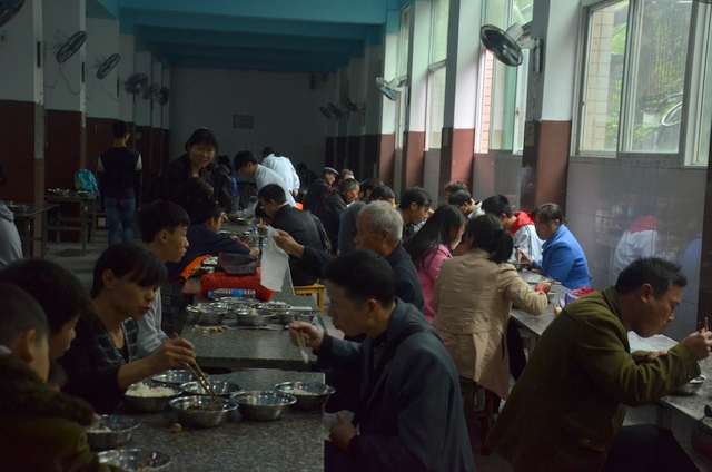 很多家长不是第一来开家长会,食堂就餐轻车熟路。