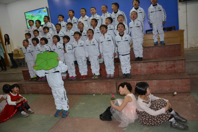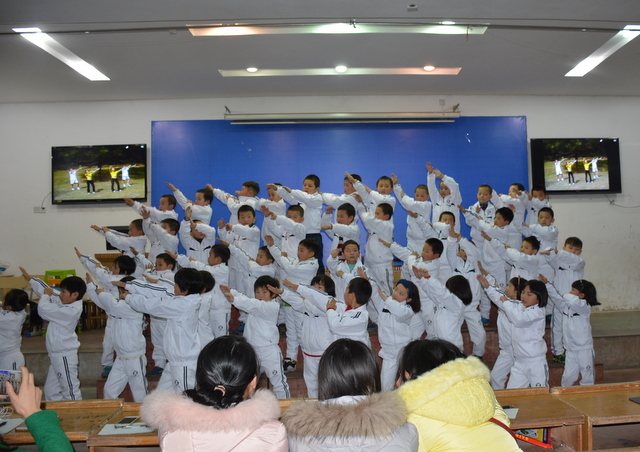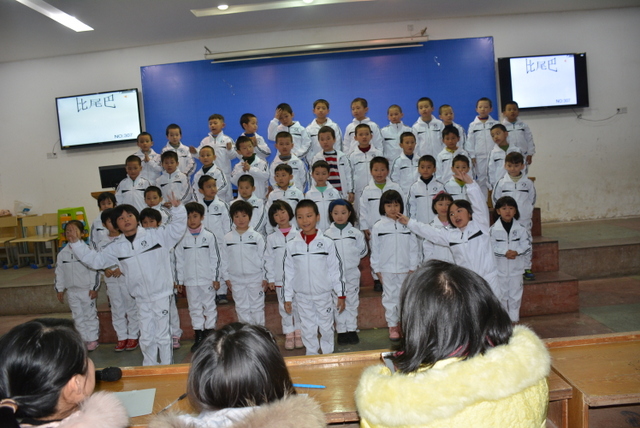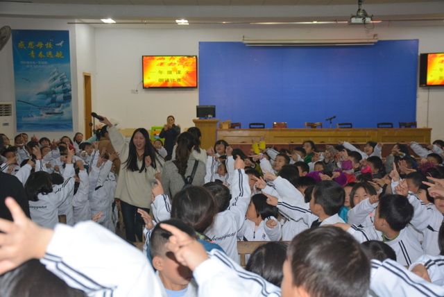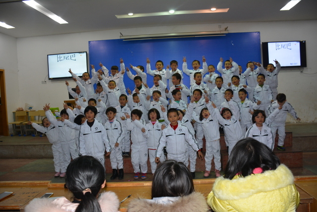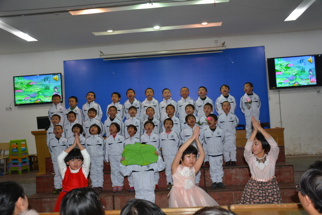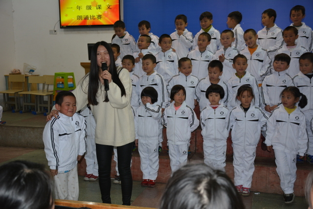 比赛以班级为单位,以自选课文篇目为主要形式,在背诵课文过程中穿插了舞蹈、吟唱等艺术表演形式,进一步提升了课文的艺术表现力、感染力。在美妙的音乐和悦耳的童声中,一群活泼可爱的孩子展现了他们的风采,同学们用稚嫩的声音展示了课文背诵独有的魅力。尽管是一年级学生,但他们表情动作丰富,充满了自信,赢得了在场师生的热烈掌声。换场时间,主持老师刘老师与学生的互动,一时让人声鼎沸的会场变得鸦雀无声,一时让“潜藏”起来的学生欢呼雀跃,把野马一般撒欢的小不点们调教得言听计从。