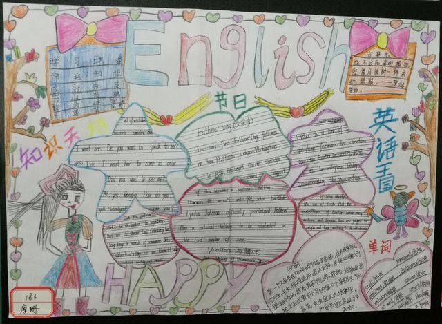 在本次比赛中,学生们积极参与,用自己的智慧和巧手,制作出了一张张精美的手抄报。许多作品不仅色彩丰富,图文并茂,书写美观,给人以赏心悦目的感觉,而且标题醒目突出,内容生动活泼,版面设计新颖独特,充满了童真、童趣。活动结束后,182班的同学高兴地说:“这次手抄报不仅了解了更多我们中国的传统节日,还学习了很多西方国家的传统节日”。从资料搜集、版面设计、色彩搭配到英语书写,全是学生们自己完成,有的一人独立完成,有的和同学合作完成。