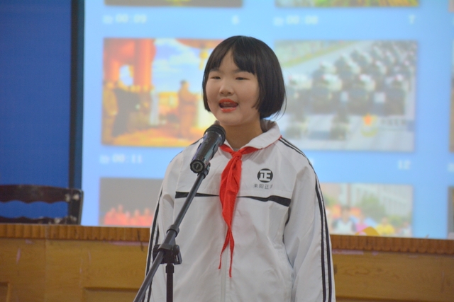 比赛在《大中国》的歌声中拉开了帷幕,同学们挥舞着五色的小旗,歌声响彻报告厅,孩子们用响亮的歌声表达自己对祖国妈妈的热爱。歌声过后,182班胡佳丽同学以《我爱你——祖国》第一个出场,深情地向祖国妈妈述说着自己对她的爱,台下的小观众痴迷在甜美的朗诵声中;186班带来田金文老师原创的《烈士陵园》更是让大家心灵震撼;184班曾佳欣的一首《祖国——我为你骄傲》把节目推向高潮。欢乐的时光总是过得飞快,转眼间为时两个半钟的演讲比赛在四年级全体学生的《少年中国说》中落下帷幕,孩子们用自己的热情,声情并茂的朗诵,向祖国妈妈致以最崇高的敬意!此次活动,既让学生感受到祖国妈妈的伟大,有利于培养学生的爱国精神,又洗涤了学生的心灵,为培养学生良好的道德人格奠定基础。
