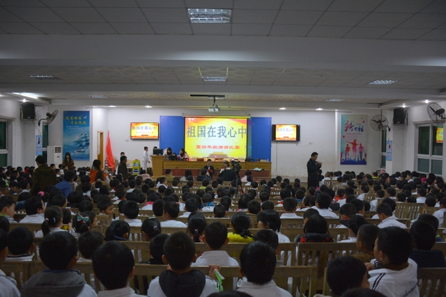 为培养四年级学生的爱国精神,丰富学生的学习文化生活,激发学生朗诵兴趣,11月30日晚上,小学部四年级全体师生在报告厅举行了主题为“祖国在我心中”的演讲比赛。