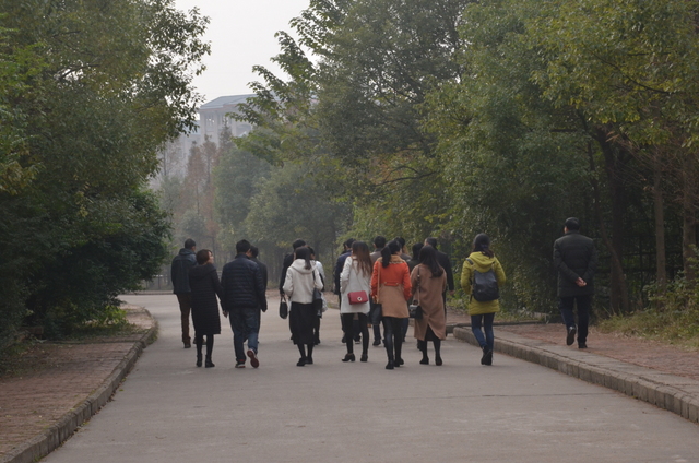 交流一直到晚上近七点钟才结束。校长招待客人们在食堂品味绿色美餐。