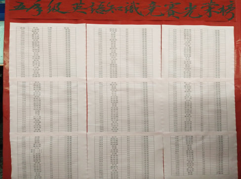 经过五年级全体英语老师仔细阅卷,评选出一等奖56名,二等奖82名,三等奖107名。