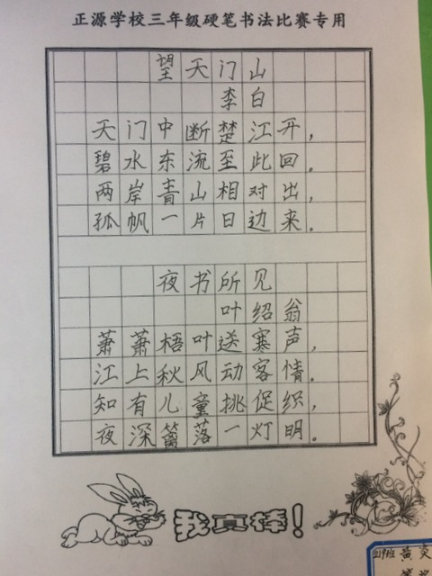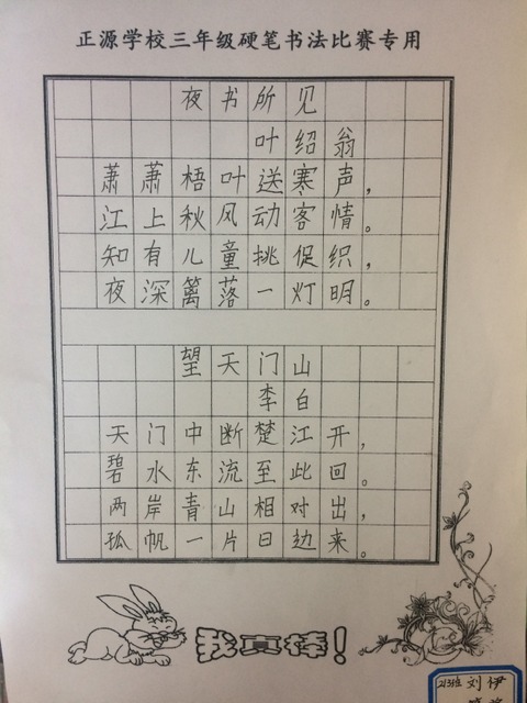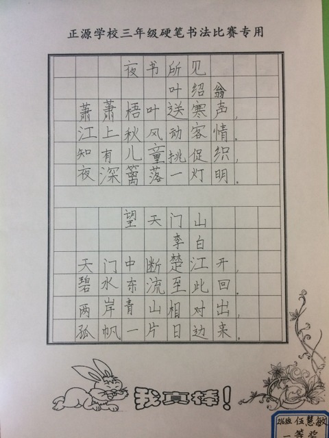 小学部三年级举行硬笔书法比赛
