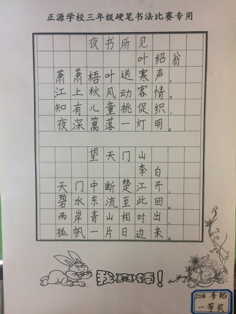 | 三年级硬笔书法比赛获奖名单 | ||