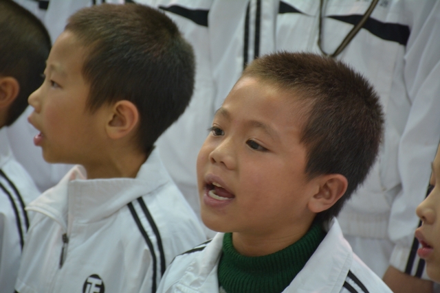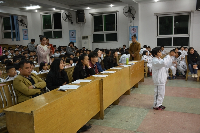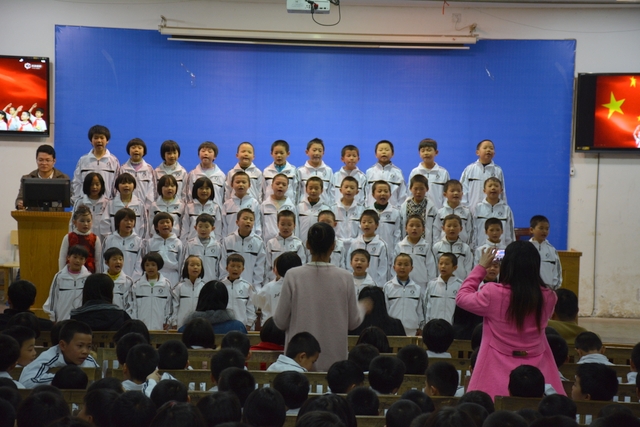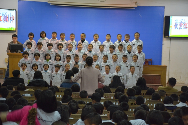 12月6日晚上,学校报告厅时时爆发出阵阵掌声。铿锵的旋律,嘹亮的歌声,整齐的队列,闪亮的目光……这是二年级的小学生们正在举行红歌合唱比赛。小学部主任罗俊豪到场观看比赛。