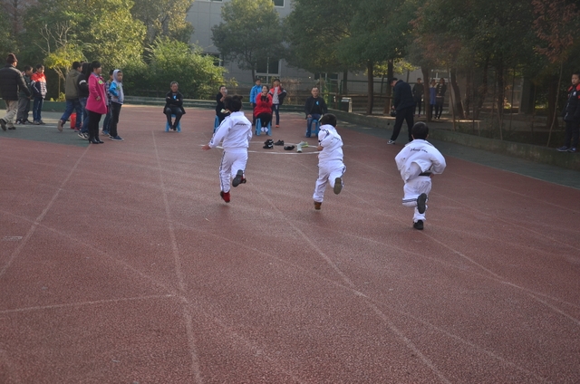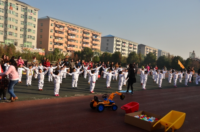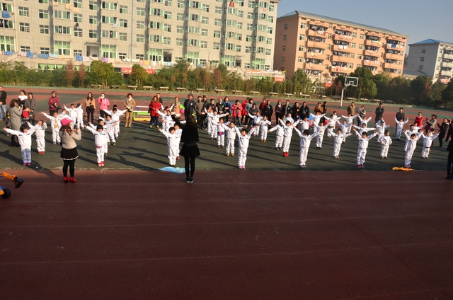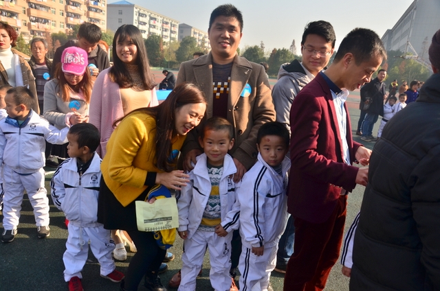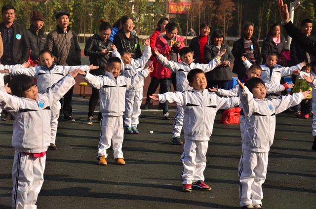 运动会开始前,小学部一年级主任徐莉、学部主任罗俊豪分别作了简短讲话,两位学生家长发言,反映了孩子上幼儿园后发生的可喜变化,表达了对学校和老师的感谢之情,交流了家校共育的体会。随后,全体学生表演舞蹈,其中一曲《手指运动》是和家长一起进行。小孩子们表演认真,和家长配合默契,赢来热烈掌声。