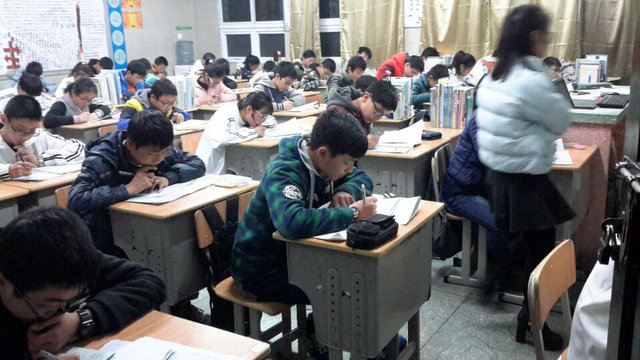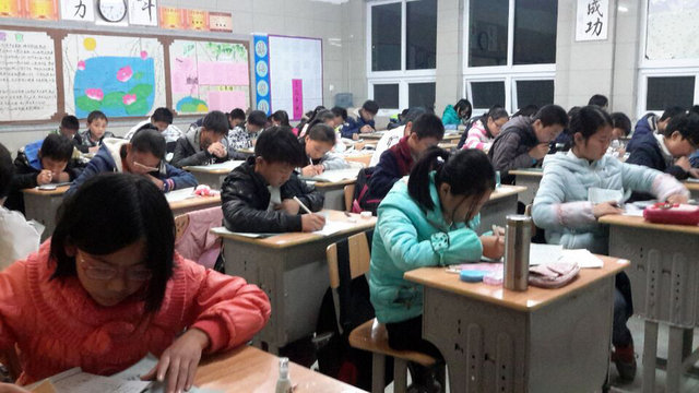 12月10日(周六)晚,初二年级的几个教室显得格外寂静,若细听,只有笔尖摩擦纸的沙沙声。