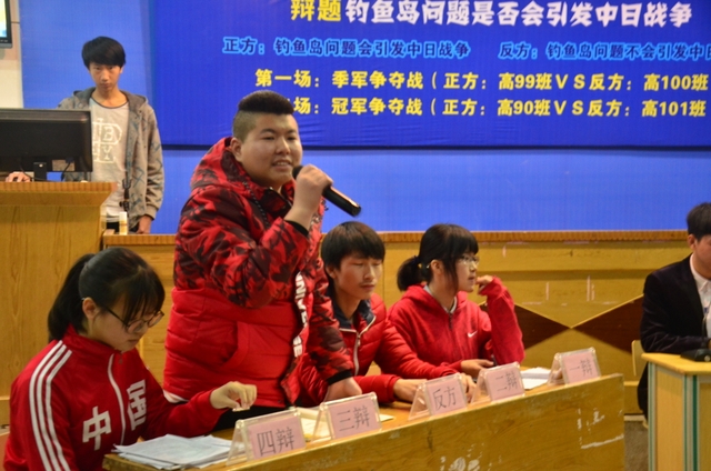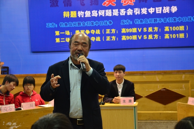 “钓鱼岛是否会引发中日战争”是一个并不新鲜的话题,又是一个极难把握的辩题,今晚却被一群尚未步入社会的学生唇枪舌剑,侃侃而谈,义正词严,据理力争,兵来将挡,水来土掩,辩得如火如荼,虎虎生风,此起彼伏,难分高下。如此紧张激烈,扣人心弦,让观众大饱耳福。