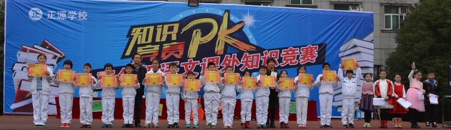 比赛成绩揭晓后,学校财务总监梁晓芬老师为获奖团队颁奖,并发表热情洋溢的讲话。梁总监说:看了同学们的精彩比赛,很惊讶,很羡慕!惊讶的是同学们小小年纪、小小脑袋瓜子怎么装了那么多东西;羡慕的是,现在的孩子真幸福,我们正源的孩子更加幸福。她说,我小时候尽管出身在一个知识分子家庭,也几乎没有什么课外书籍可以阅读,只有一本名字叫《两双鞋子》的小说和三五本杂志,再就是《毛主席语录》之类。同学们生活在当今社会,虽然竞争很激烈,但只要肯读书,就可以读到各种各样的书,我真巴不得时间倒回去,让我的童年重新来过。梁老师还说,正源历来重视素质教育,经常举办这样的活动,让同学们有充分展示自我、学习别人的机会,这在别的学校又是难以办到的,所以说正源的孩子特幸福。梁老师最后肯定同学们很聪明,很阳光,希望同学们趁着现在脑袋瓜子好使,珍惜良好的读书条件,多读书,读好书,让自己一辈子收益。梁老师还对活动的成功举办表示祝贺,对老师们的付出表示感谢。