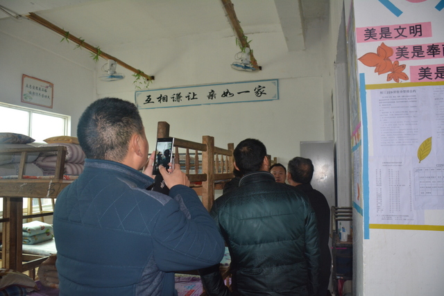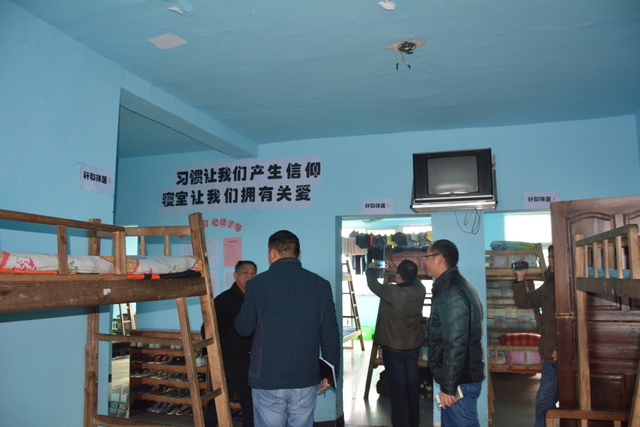 1月15日上午,陈副校长再次率宿管部、宣传处等相关处室负责人检查男生宿舍,这次检查的是初三男生宿舍。初三年级主任唐循南、德育主任曹秋文引导检查。