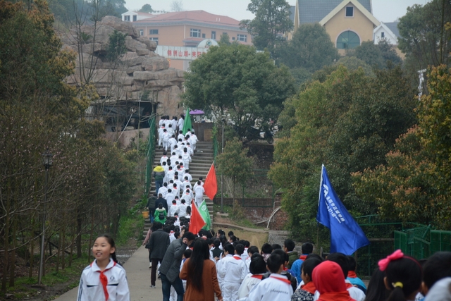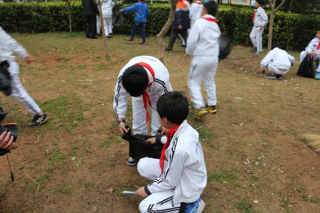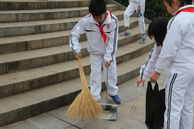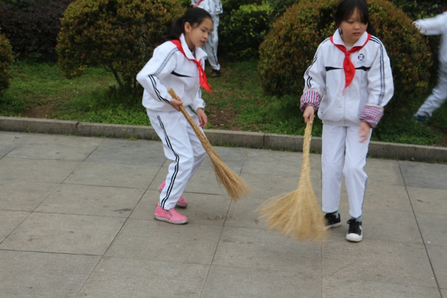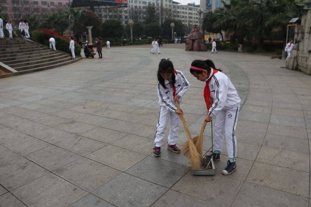出了学校西门,兵分三路。两路步行,分别奔向马阜岭公园和神龙广场。行进队伍宛如一条白龙,向耒阳城区进发,经过近半个小时时间到达目的地。他们打扫台阶、亭台、楼阁、广场,拾捡路边、草地上的垃圾,为美化耒阳的环境出一份力。