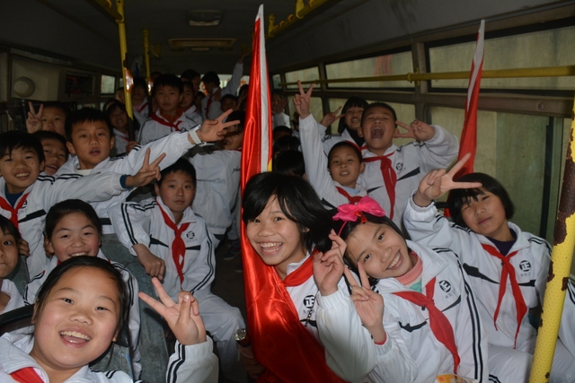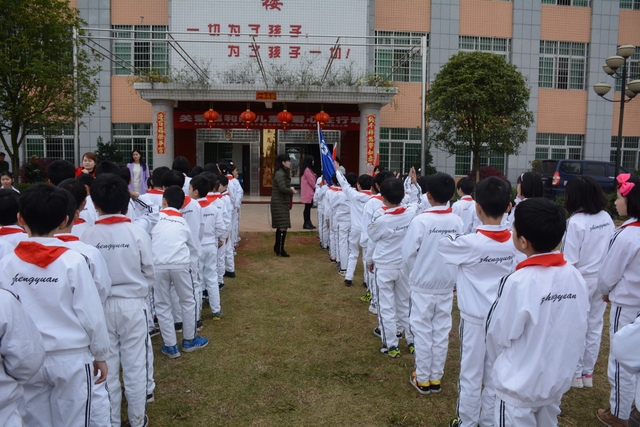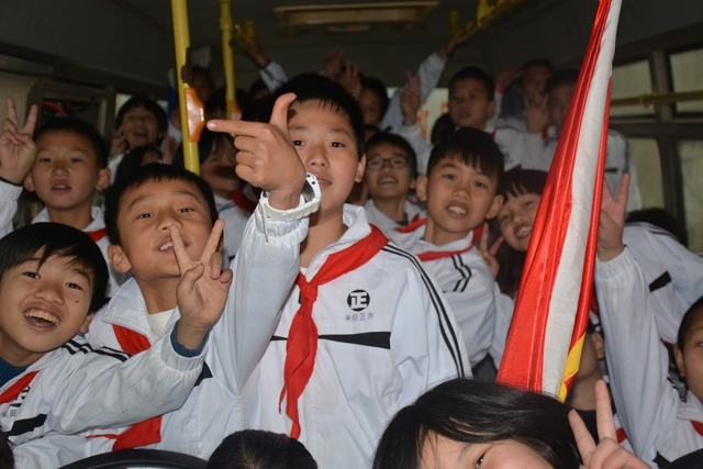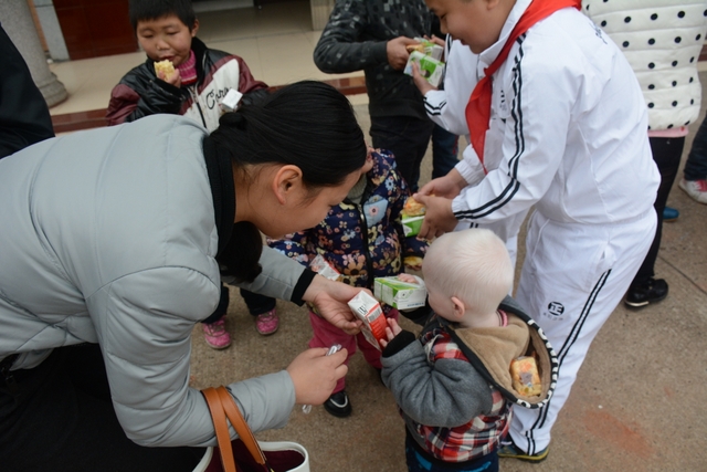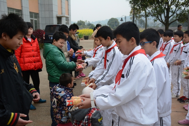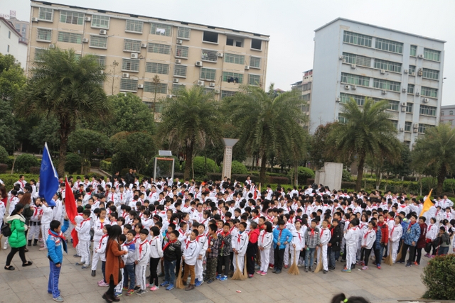 早上八点,微风习习,细雾濛濛。五年级全部17个班的近千名同学穿着干净、整洁的白色校服,手拿扫把、撮箕、垃圾袋和为耒阳市福利院少儿小朋友准备的礼品,在小学生运动场集合,学校陈副校长作了简短讲话后,小学部学部主任罗俊豪、德育主任谢红云,五年级年级主任刘龙军、德育主任陈华弟,以及各班班主任和配班老师,便组织学生浩浩荡荡从西大门出发。只见个个兴高釆烈,精神抖擞,胸前的红领巾在白色校服的衬托下,显得格外鲜艳。