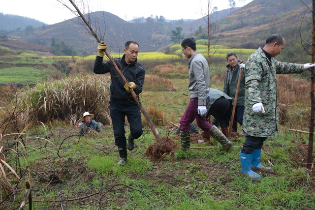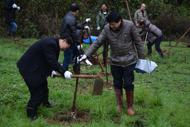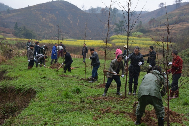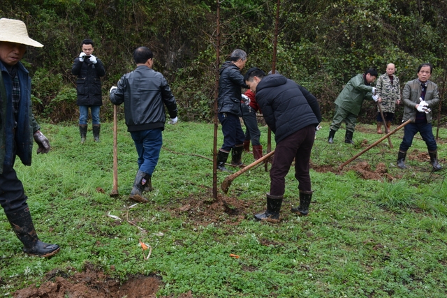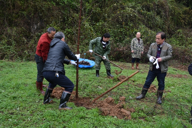 3月16日上午,学校后勤处副主任贺国洪带着罗校长对家乡的浓浓情意,带着近二十人的队伍,带着学校自己培育多年长成的水杉树苗,来到太平乡太平村麦冲龙泉洞义务植树,为那里增添一抹绿意。