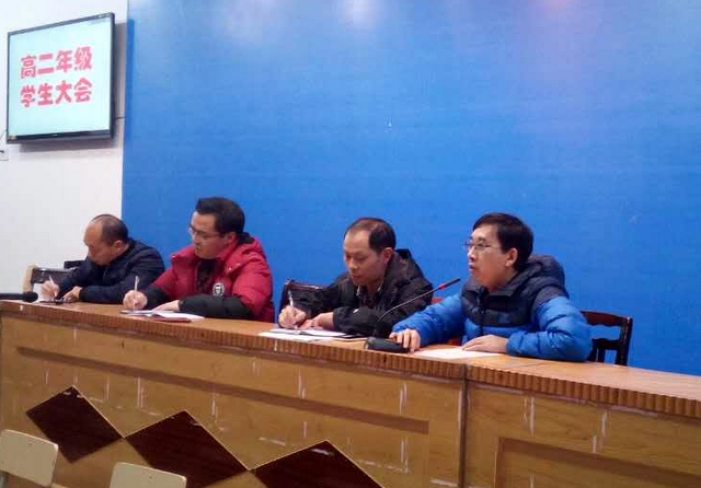 3月13日、14日晚,高二年级分两批在学校报告厅召开了学生大会。本次大会由郑敏副主任主持,年级主任毛小波主任,学校驻年级领导李清朵主任,钟琼佳副主任分别发言。
