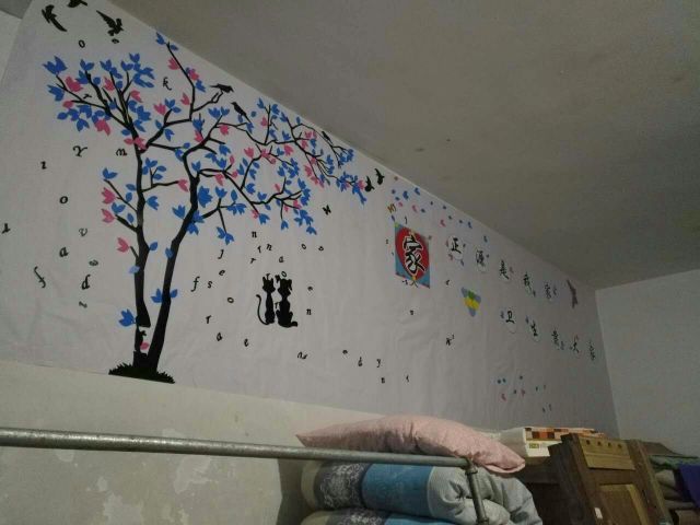 “火车跑得快,全靠车头带”,据三年级生活老师反映,为让本次竞赛取得圆满成功,年级主任刘海英率先垂范,牺牲休息时间为15个寝室精心设计、挑选大型墙贴画,并亲临2231、2241等寝室现场作画,指导布置,并为众寝室打造了“样板工程”——2231。