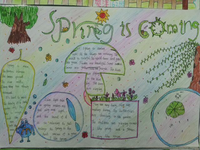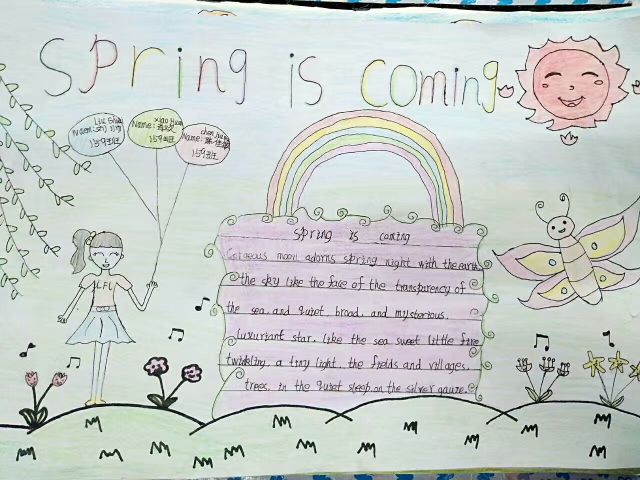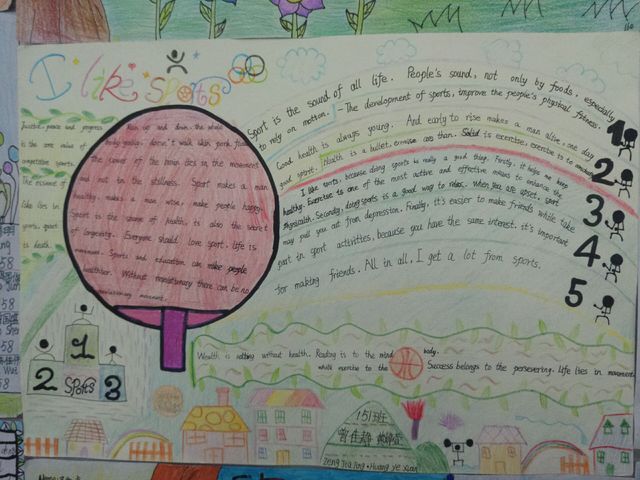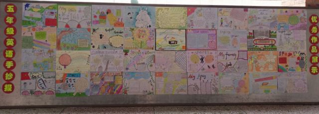 此次比赛分为 “I like sports”、 “English Garden”、 “Spring is coming”、 “I like school” 、“My family” 五个主题,分别由五年级五名英语教师进行指导和评分。学生在一周时间内完成材料收集、准备和创作。在创作过程中,以学生自我创作为主,教师适当指导。在广大学生和英语教师的热烈响应下,英文手抄报活动得以顺利开展。29日,五年级全体英语教师采取逐级推选的办法,以班级为单位共推选出64幅作品参赛,再从版面设计、内容合理、形式多样、英语书写、图文并茂、色彩搭配等方面进行了综合评价,共评选出一等奖40名:二等奖50名、三等奖60名。在这些获奖作品中,有些作品生动形象,有些作品英文书写一流,有些作品版面设计新颖独特,有些作品创意十足,每幅作品都有一个鲜明的主题,每一幅作品充分展现了正源学子的综合能力。这一幅幅精彩纷呈的作品,呈现了一场盛大的英文与艺术完美结合的视觉盛宴,而且也培养了正源学子的高尚情操,提高了正源学子的艺术品位。