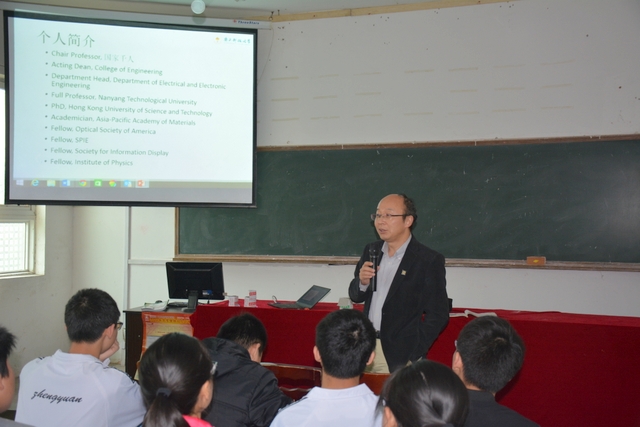 下午,孙教授对高中各年级优秀学生作科普讲座