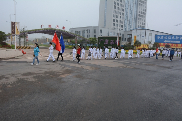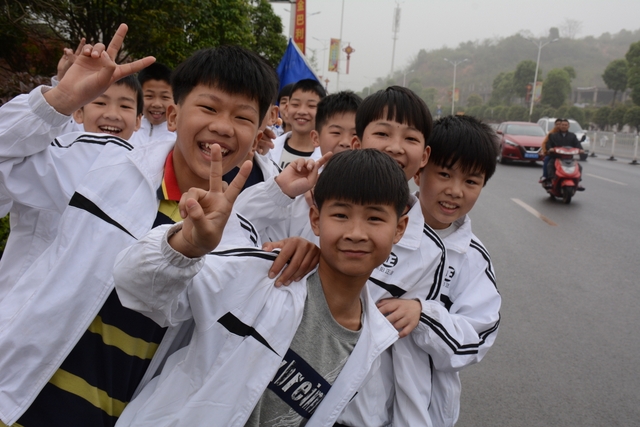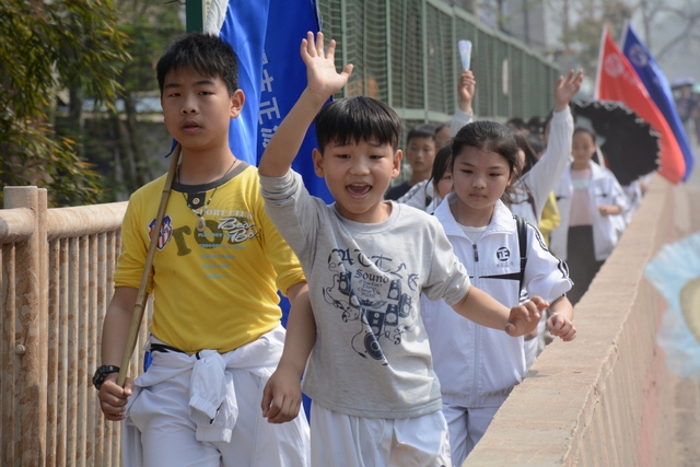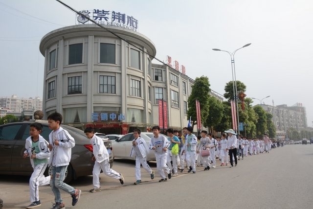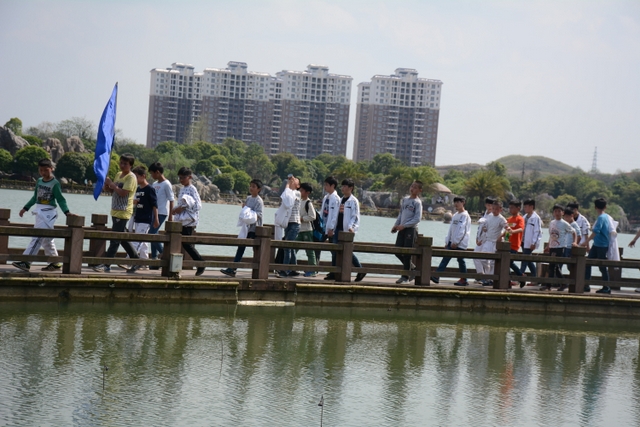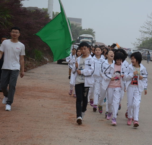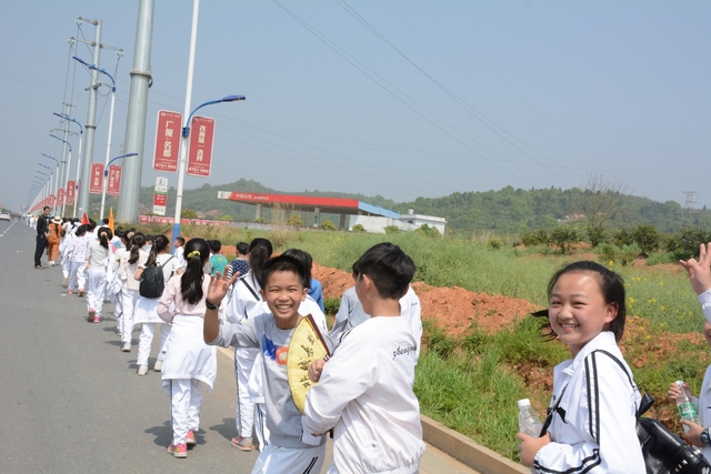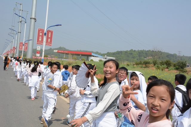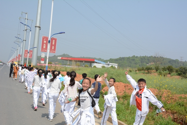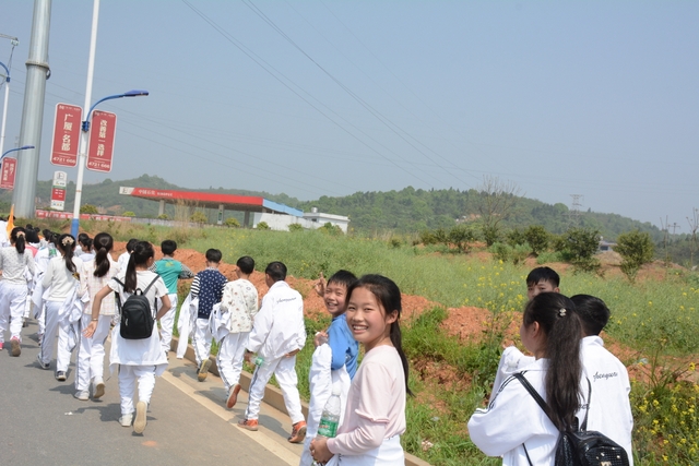 4月7日,我校六年级一千多名师生去顺湖举行远足活动。这是我校今年组织的第二场远足。