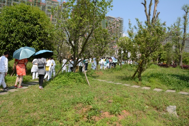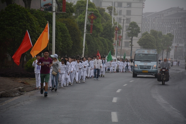 9时许,23个班级以二路纵队的形式从学校浩浩荡荡出发,宛如一条白色长龙。一路上,同学们精神饱满,队伍整齐。经过近两个半小时步行,全体学生无一人掉队,全部到达目的地顺湖区域。