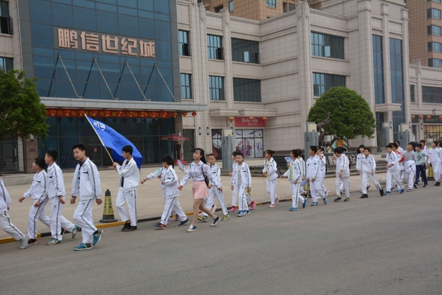 早上8点,六年级全体师生齐聚小学部运动场,操场上彩旗飞扬,人头攒动。六年级学生的心情如此时的天气明媚。学部罗俊豪主任作了动员讲话。罗俊豪主任先向全体师生讲述了本次活动的目的、意义,再强调了整个活动中的纪律,尤其就安全问题作了全面的分析,对相关的措施作了比较全面的安排部署。活动在六年级主任阳明权宣布出发后正式开始。