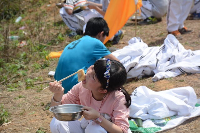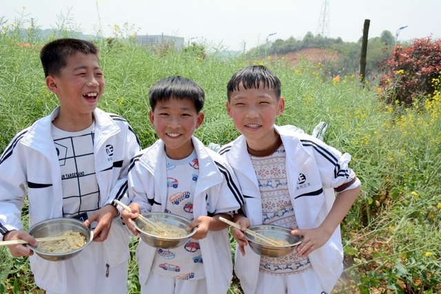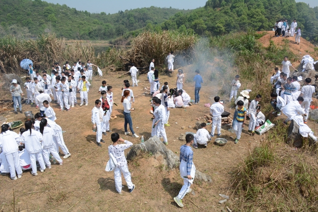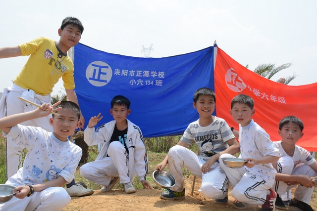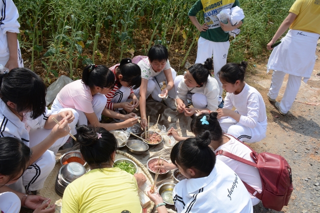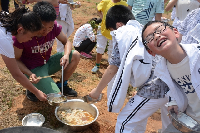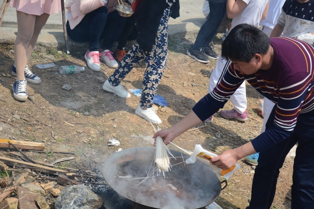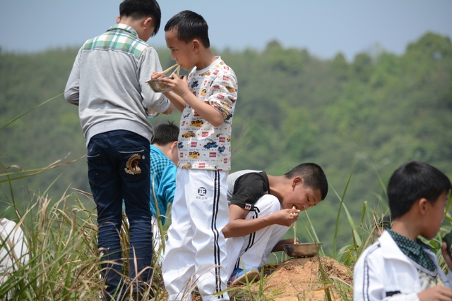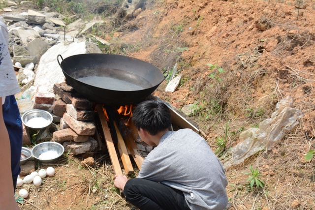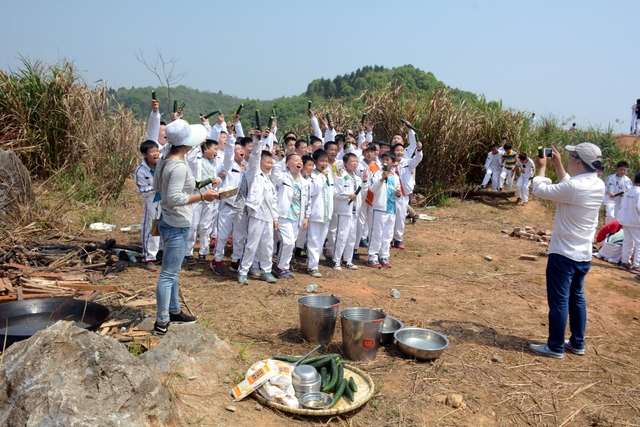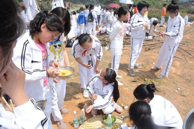 野炊地没有大的空坪,各班基本分散起炉,场面不够壮观,可更显自然。